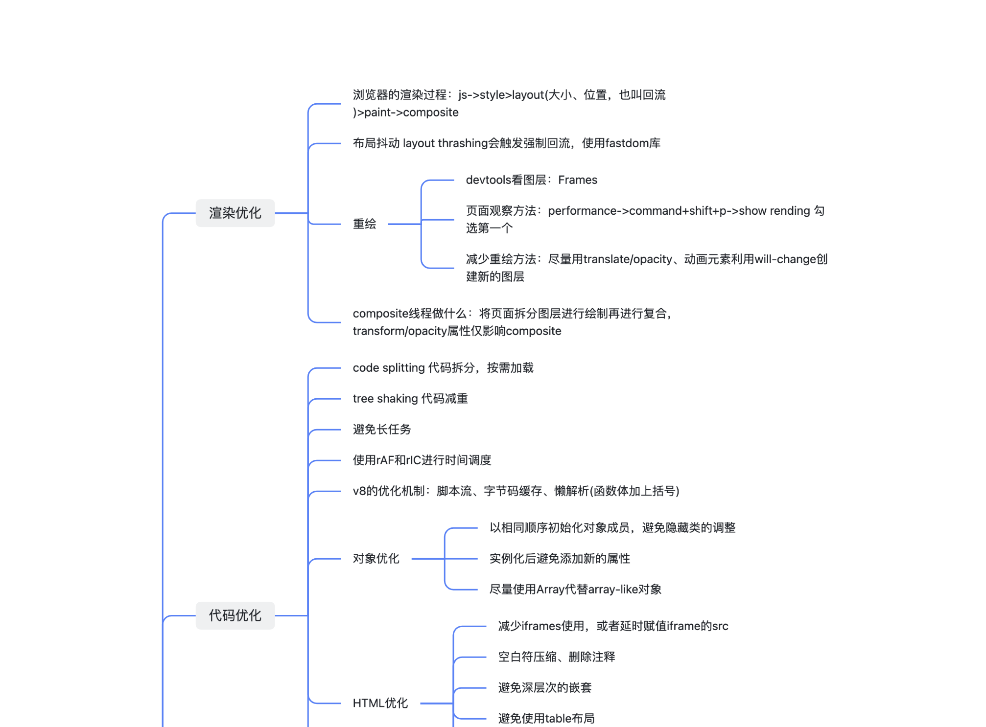 - 指标和优化 查看页面帧数:performance->cmd+shift+p 搜 frame 最后一个