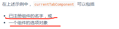 通过使用保留的 <component> 元素,动态(要用v-bind)地绑定到它的is特性,我们让多个组件可以使用同一个挂载点,并动态切换。