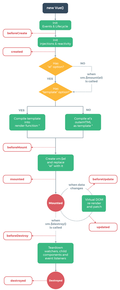 3.beforeMount之后mounted之前编译的内容替换el的dom,如果没有el,beforeMount、mounted钩子不执行,所以$el不可访问,可以手动调用$mount()方法使得$el可访问。
